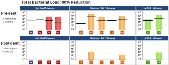 This pandemic has taken a toll on several of our patients. I am grateful when they return for care even if I expect most to need our help to become healthier. This case study is an example of what can be achieved with the partnership of the patient to provide appropriate home care and personalized periodontal therapy based on clinical lab results from OralDNA® Labs.