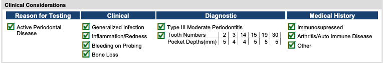 When placing an order for MyPerioPath®, the option to remove the reference lines is something our team prefers. In previous cases where the reference lines appeared, some below reference patients would confuse being below reference as healthy. By eliminating the reference lines, this assumption rarely happens.