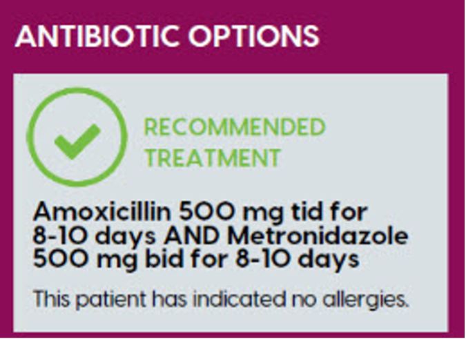 Because this patient had a severe active infection, we started empiric antibiotics (amoxicillin and metronidazole) immediately while awaiting results.